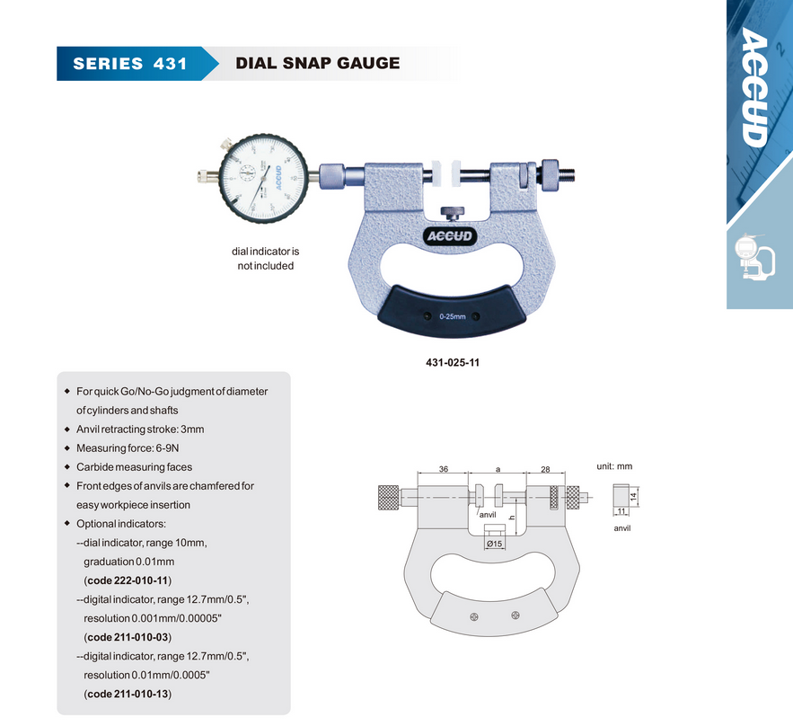 ACCUD DIAL SNAP GAUGE 431-025-11 431-050-11