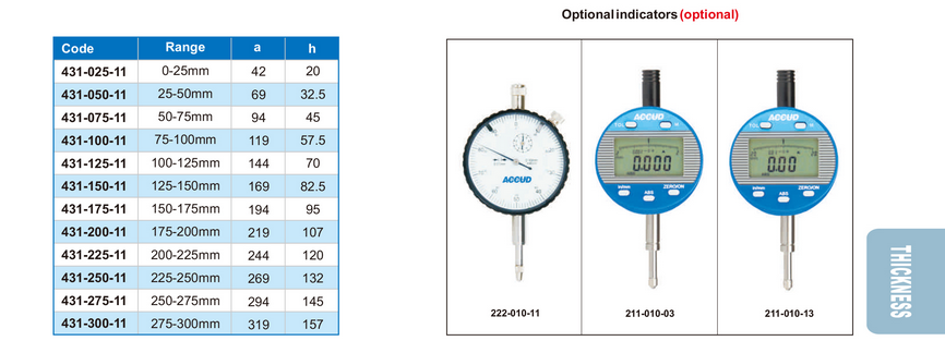 ACCUD DIAL THICKNESS GAUGE 443-001-01 Range 1mm/0.001mm