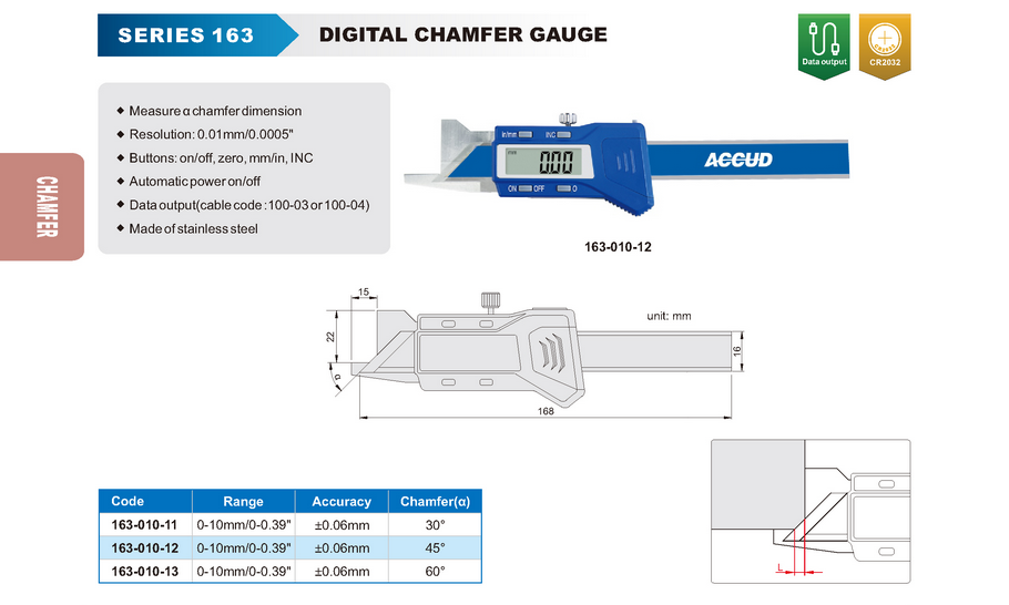 Accud Digital Chamfer Gauge 163-010-12