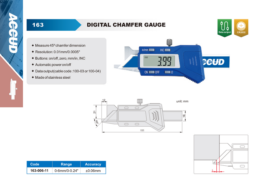 Accud Digital Chamfer Gauge 163-006-11