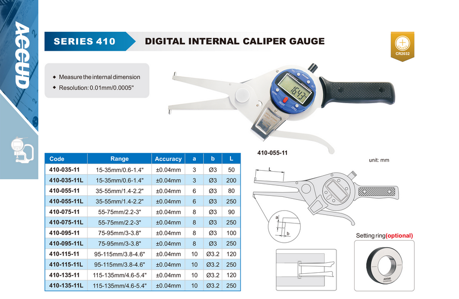 ACCUD DIGITAL INTERNAL CALIPER GAUGE 410-035-11 / 410-035-11L