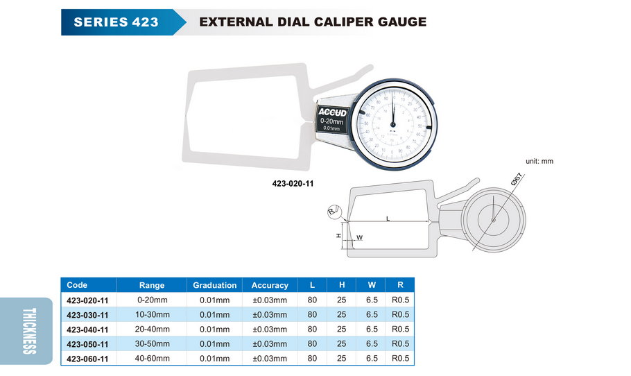 ACCUD EXTERNAL DIAL CALIPER GAUGE 423-020-11 / 423-030-11