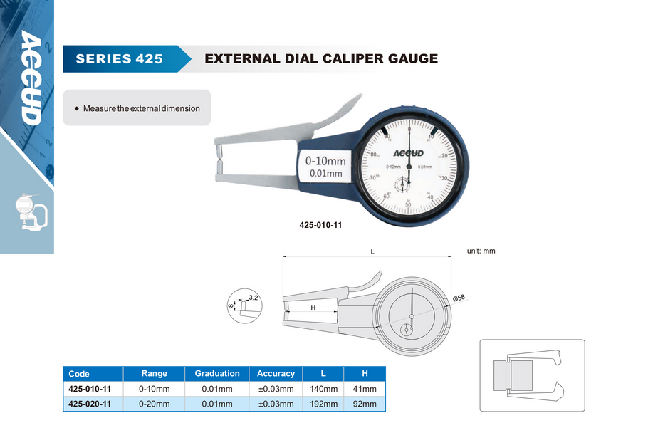 ACCUD EXTERNAL DIAL CALIPER GAUGE 425-010-11 / 425-020-11