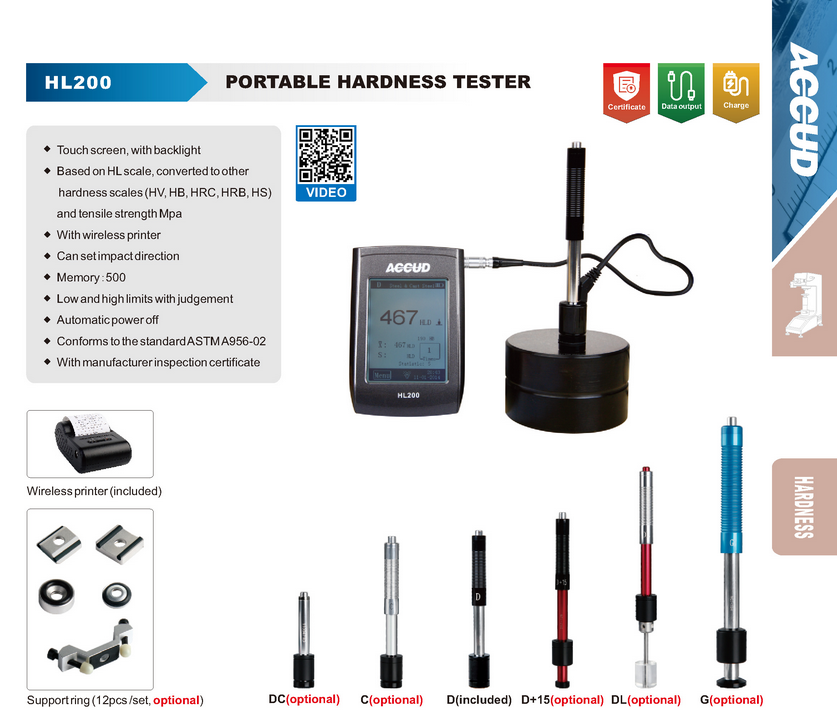 Accud Portable Hardness Tester HL200