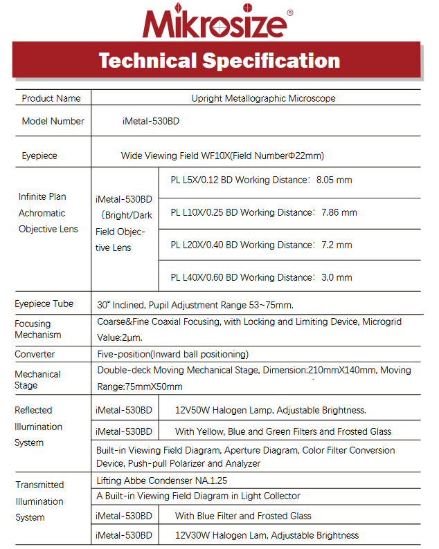 Mikrosize IMetal-530BD Upright Metallographic Microscope